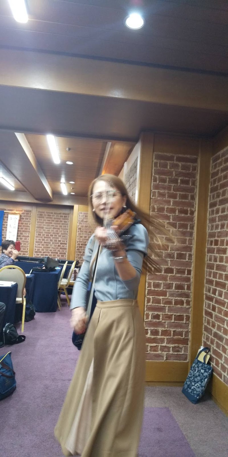 本日の講話者、小柄で華奢でスレンダーであるにも関わらず、見上げるほどのプロ意識の高さをお持ちのエレキヴァイオリニスト Song氏をお迎えして「Entertainerである為に~OnとOff~」に耳を傾けました。
